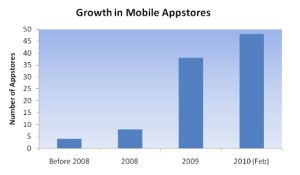 Another study, “Sizing up the Global Apps Market”, had equally impressive stats. The number of app stores, which in 2008 was less than 5, had skyrocketed to nearly 50 by February of 2010. With the recent announcement by AppBistro—that they are launching white label app stores that will make it possible for any publisher to create a custom app store—this number is certain to grow even more rapidly for the foreseeable future.