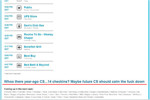 But for right now though Wong is just reveling in the serendipity caused by the app, moments like this and the one below where someone checked in an ungodly number of times (the app fought back) making the execution totally worthwhile.