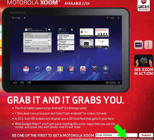 Earlier today there was quite a bit of commotion in the tech press over a Verizon ad that stated that Flash wouldn’t be making its way to Android tablets until Spring 2011. Which has the potential to be pretty far off (as late as June), especially given that the Motorola Xoom — the first tablet to run Android Honeycomb — will be coming out in a few days.