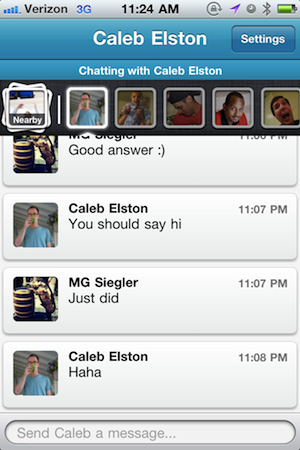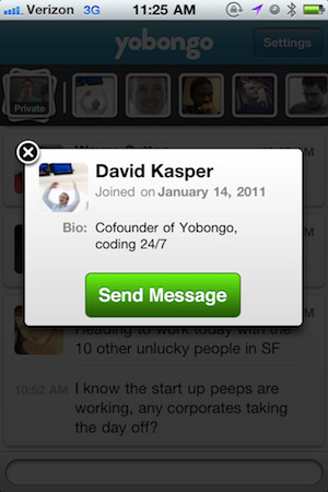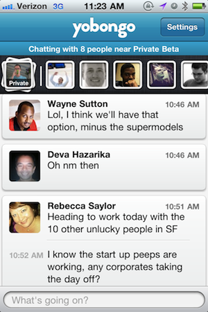 Actually, Yobongo’s location features aren’t fully turned on yet, so it’s hard to judge the app that way right now. But Elston says they will be turned on shortly — they’ve just been waiting for enough people in the beta for it make sense. The plan is to open the beta more this week after seeing some good early stats (an average of 10 app opens per day per user and usage within 60 seconds of joining).