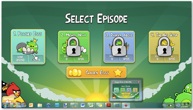 The game is the Angry Birds you all know and love, but you can’t import any of your scores from the mobile version of the game into the desktop version.