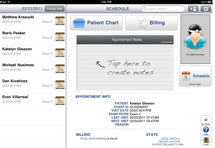 The free iPad app allows doctors to schedule patient appointments, write prescriptions and send them to pharmacies, enable reminders, take clinical notes, access lab results, and input electronic health records. The electronic medical records element is key because the Obama administration is currently offering strong incentives for doctors to start moving their health records online. DrChrono will help doctors start, finish and manage this process.