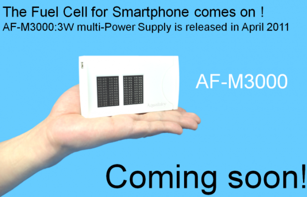 Fuel cells are still on their way into the mainstream, but we’re getting there, slowly. Case in point: the AF-M3000 [JP], a mini fuel cell that just requires users to add water to get it to work. What’s interesting is that Kyoto-based Aquafairy has developed the device specifically for use with smartphones.