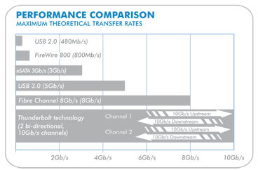 One handy feature that will likely be common to most TB devices: you can daisy chain drives, and even attach a monitor on the end. Handy! But not really the most likely setup.