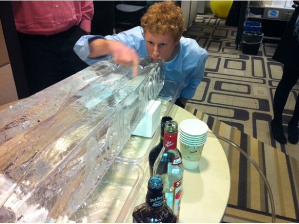 The last thing I want to do is put a stop to all this. But the next time someone in HR starts bugging me about bribing a government official to get the inside scoop on a story, I’m just pointing to the picture above of that poor AOL employee being forced to drink blue caracau, vodka, lemonade luges from the ice track. :-)