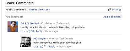 On the other hand, it also has some real advantages. Primary among these is that it requires commenters to use their real identities. In the past few hours, most of the anonymous trolls who have come to call TechCrunch comments a second home are gone. Of course, some people don’t want to comment with their real names for good reason (they want to speak freely without fear of reprisals), but for the most part in practice anonymity was abused. It was used mostly as a shield to hide behind and throw out invective. Have the trolls really vanished or will they return? I certainly hope they are gone. We have fewer comments in general on most posts today, but the conversations are much more civil and interesting.