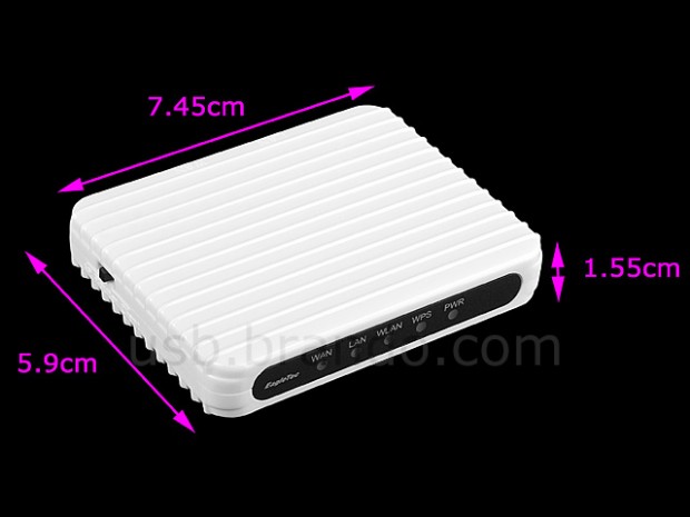 The EagleTec Nano Size Wireless N-Router is a portable wireless-N Router with up to 150 Mbps in 2.4 GHz band, which is also compatible with IEEE 802.11b/g wireless devices. The router allows multiple users to share one broadband connection, as well as secures your private network. Support auto device IP assignment to make the plug and play for travel application. The hardware slide switch selects Router, AP and WISP (client) modes. To provide a secure wireless network, the router supports wireless data encryption with 64/128-bit WEP, WPA and WPA2. Network Address Translation (NAT) Firewall is also support to shield your communications and network from hackers and wireless eavesdroppers.