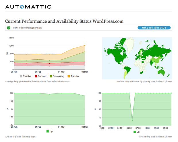 While Mullenweg tells me that DDoS attacks are fairly common at WordPress.com but its the strength of its infrastructure (distributed across three data centers in three cities) usually prevents anyone from noticing. The recent attacks have impacted not just WordPress.com sites, other servers in the same part of the network causing the outages. WordPress.com is collaborating with upstream providers to shift the attacks.