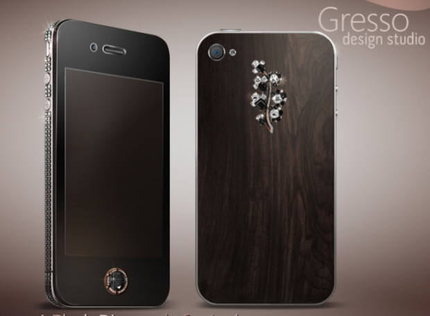 Got some extra gold bricks lying around? Check out the Gresso iPhone 4 Black Diamonds for Lady. It’s not a case, rather the phone has been modded to house 6 carats of black diamonds, edging in platinum, a 2 carat diamond home button and a frame of white diamonds. The back of the phone is made of a 200-year-old African Blackwood.