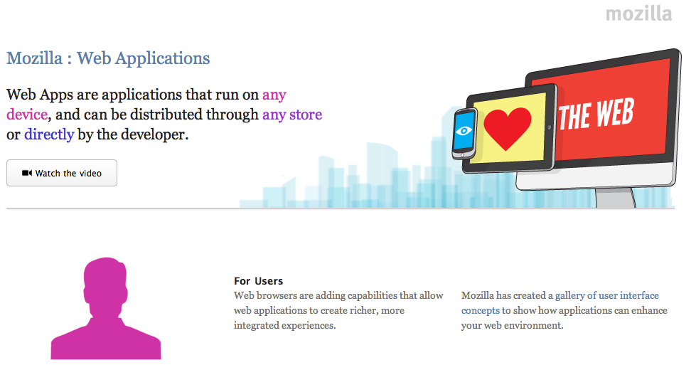 In the spirit of the new and open web, these new Mozilla-backed applications can be built using HTML5 and Javascript, and developers can use the stable APIs, utilities, and documentation in this release to publish their app to users, or to create a web app store or directory. Users can review a gallery of user experience ideas and beta-quality versions of Firefox and Chrome add-ons that integrate the web app experience more tightly with the browser.