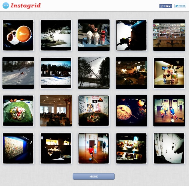 Finally, Instagrid is a useful way to see all of your Instagram pics on the web. Instagram itself is almost entirely mobile-based. It doesn’t provide any way to view your pictures online other than through individual links for each photo. With Instagrid, you can see all your photos on pne page in a grid. For example, here is my Instagrid page (see also bottom screenshot). Another Instagram online viewer worth checking out is Instagre.at.
