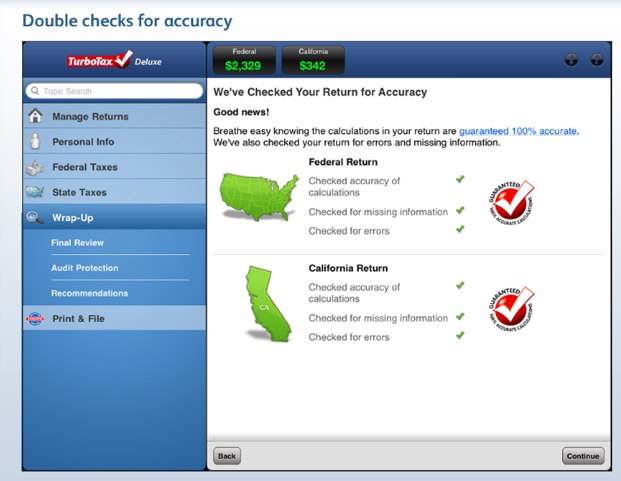Last night, after much procrastination, I started my taxes—on my couch with a movie playing on the TV, using only my iPad. I was testing out an early build of TurboTax, which is now available for the iPad (in addition to the online and desktop versions). I got through the bulk of my taxes by the time the movie was over.