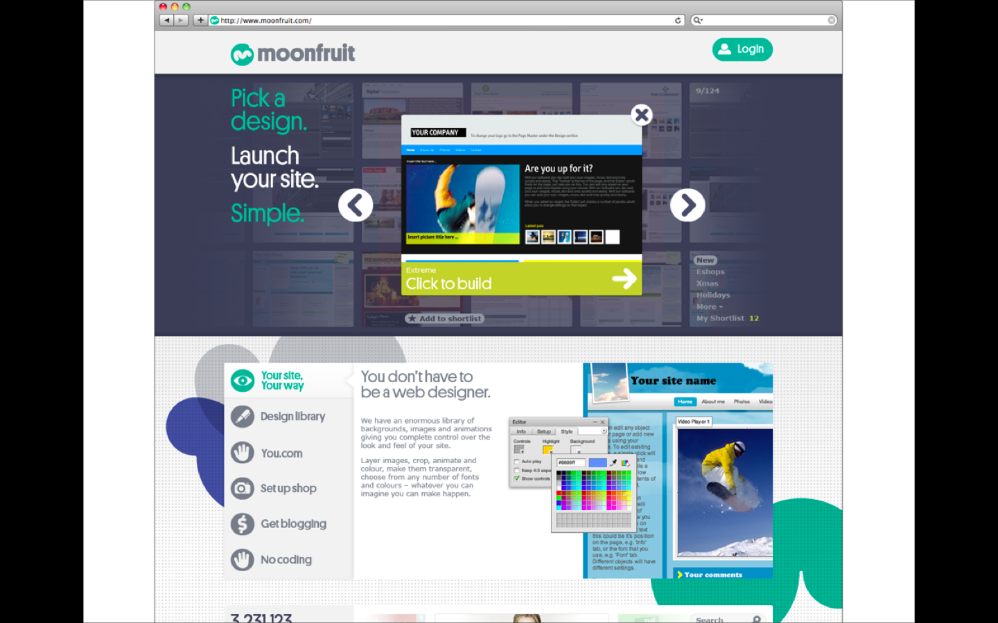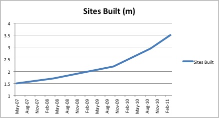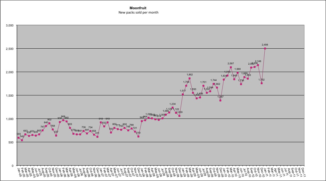 Growth is palpable. Some 3.4 milion sites were built on Moonfruit as of February 2011, versus 2.4 million in the same period last year. It now has 300,000 users, 50,000 premium paying subscribers (a 40% increase from January 2010) and turnover has increased by 51% since Jan 2010.