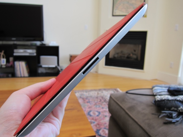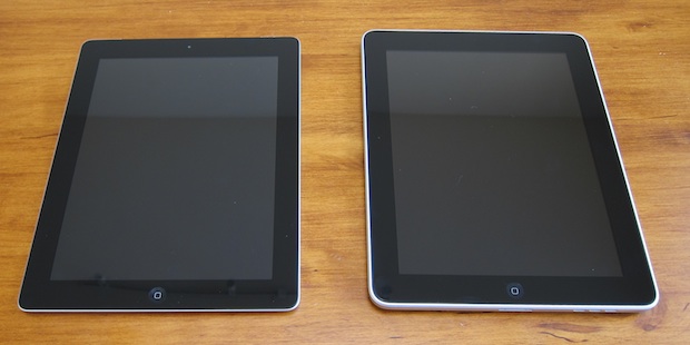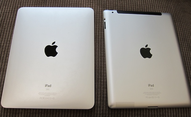 The single biggest change form a physical perspective is the thickness. Holding the original iPad now feels a bit like holding a slightly bulky monitor compared to the iPad 2. The iPad 2 feels much more like holding a clipboard — albeit a mildly heavy one. The move to cut the thickness from 13.4mm down to 8.8mm really makes a huge difference when you switch from holding one to holding the other.