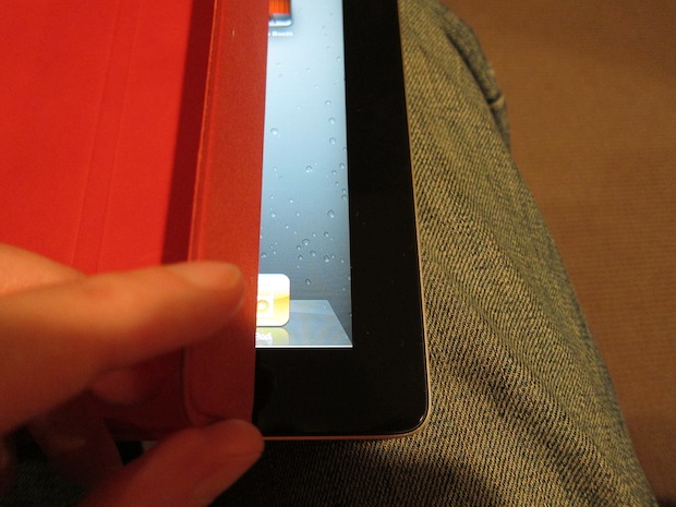 The coolest thing about it though is that it can put to sleep and wake up the iPad 2. Yes, with the cover you’ll no longer have to hit the sleep/wake button if you don’t want to. That speaks well for the button-less iPad of the future.