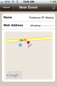 All users who want to create a Posterous site around an event have to do is open up their iPhones and create a .posterous address for a specific location and post (the site you most recently posted to will stay on top of your events).