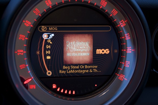 Features from MOG include on-demand streaming of unlimited, ad-free listening, control from existing Mini joystick and steering wheel controls and local iPhone storage for use when no data connection is available. Also, MOG has their patent-pending “MOG Mobius” music discovery engine, which enables users to switch between true “artist only” radio or a full mix of similar artists.