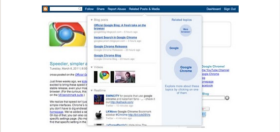 Google says it will be showcasing the new design of the Blogger back-end at SXSW (our coverage of the event), as well as a new content discovery feature that lets users find new content to read based on the topics of the blog they’re visiting.