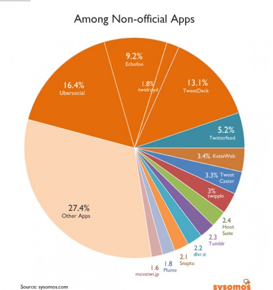 As we heard last week, Twitter made a bold move regarding its ecosystem, stating that third-party developers should no longer try to compete with Twitter on native clients; instead they should focus on things like data and specific verticals for Tweets. In the email sent to developers, Twitter said that some 90 percent of active Twitter users now use official Twitter apps on a monthly basis to access the service. Social media analytics company Sysomos decided to track Tweets on the day that Twitter made this announcement to determine if there was any truth to this assertion.
