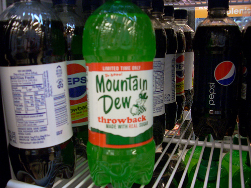 Yay for real sugar! Pepsi has thankfully made the HFCS-free Throwback editions of Pepsi and Mountain Dew permanent drinks rather than just on-again, off-again Limited Editions. These pure sugar editions even come in retro cans and bottles and are apparently a big enough hit that they’re staying around for good. Fine by me. I like ’em.