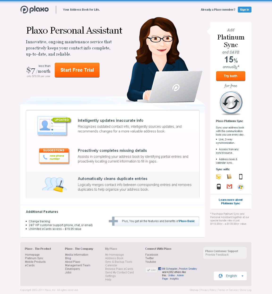 Plaxo will continue to offer its “Platinum Sync” service, which allows two-way, realtime synchronization of your address book across your various devices and hardware, providing a consistent, updated address book from wherever you access it. And Platinum Sync and the Personal Assistant can be purchased together at a discounted price.
