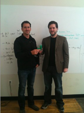 Walrath became a board member of Yext about a year and a half ago when he first invested in the company’s $25 million series B. Now that he is taking chairman role, he will be at Yext’s New York City offices once a week plotting the overthrow of the online local advertising world with CEO Howard Lerman. (The two are pictured here enjoying some green St. Patrick’s Day champagne yesterday when they told me the news).