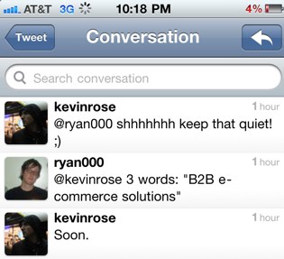 While searching through Kevin Rose’s tweets I fought this, direct confirmation of his new startup a Business to Business eCommerce Site. See the screenshot below.