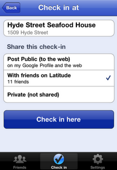 Meanwhile, checking in on Latitude on the iPhone brings the ability to the platform that first made the functionality popular (via Foursquare on the iPhone). Latitude has been around for several years and has a few million users, but they have mainly been passive users, just sharing their location in the background. The check-in allows them to be active, and get rewards and deals associated with that.