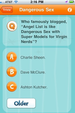 Don’t know your pre-money from your post-money or carried interest from convertibles? Now there’s a 99-cent iPhone app for startup founders to bone up on investing terms and concepts they might encounter when they first try to raise money.. It is called Angel Trivia Daily, and it tests your angel investing knowledge witha new question every day. Created by two Seattle entrepreneurs, Joe Wallin and Bill Carleton, it’s a fun way to learn the minutia of angel investing.