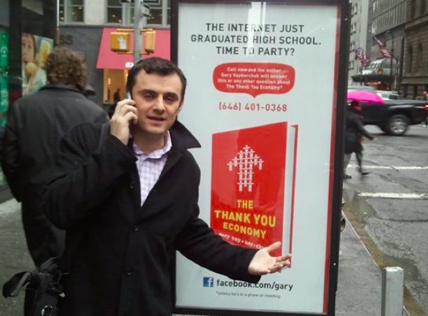 I thought I’d prank call him and ask him some questions about the book, like, “What the hell is the Thank You Economy?” His last book, Crush It!, needed no such explanation. The title says it all, and it’s fun to say (Crush It!”). The Thank You Economy sounds too polite and vague. I have no idea what it means. I guess I should read the book. But the poster promised me that Gary would answer these questions himself. All I can say is: False Advertising!* (*Unless he was in a meeting or something).