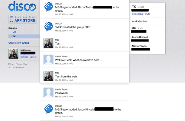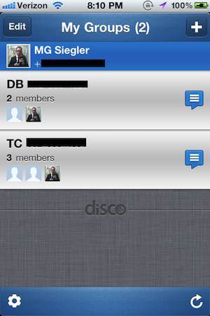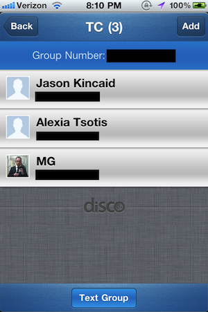 In fact, better than the app is the Disco website, which provides a simple, streamlined way to send text messages to your groups from the web. And new messages appear in real time. You can also manage your groups from here, create new groups, and edit your profile. The site also works beautifully with the Google Voice Chrome extension if you have it installed.