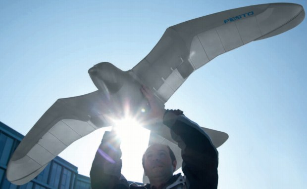 The SmartBird, designed by Festo, is an ultra-light flying machine modeled on “herring gulls,” whatever those are (we have “seagulls” here), and it actually flies by flapping its wings as a bird would — not just up and down, either, but twisting at the precise angles that make precise flight possible.