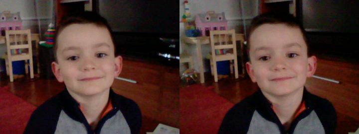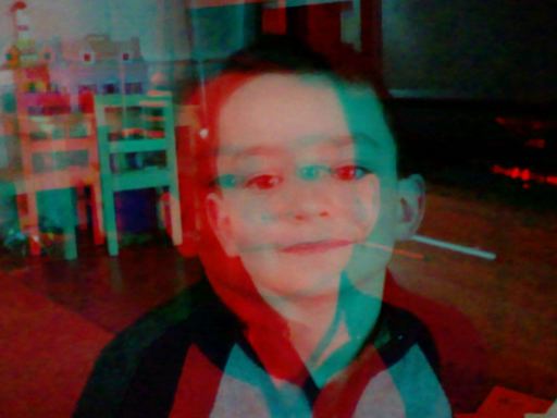 The camera takes 3D pictures an also allows you to add wild 3D effects – 3D hearts, bumps, and even deep holes – to 3D images. The images themselves are recorded at 640×480 and are stored on the SD card as JPGs and MPO files (This is the MPO of the image above). The image, when decoded, looks something like this, provided you have anaglypic glasses: