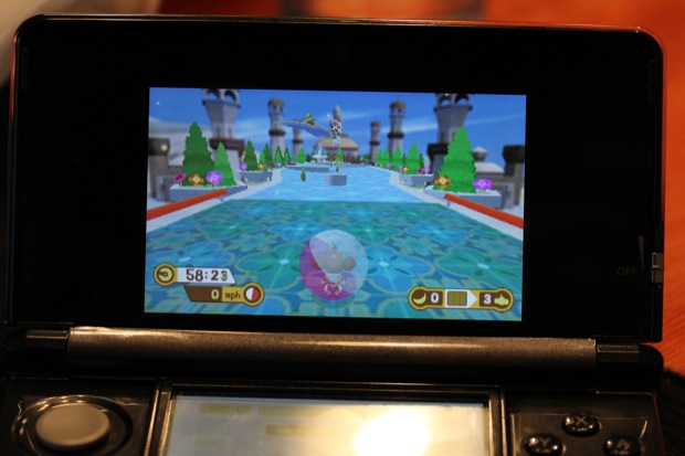 Super Monkey Ball 3D – I’m not a big Monkey Ball fan but the 3D and controls are well done enough to amuse die-hards. Like Ray-Man, the 3D is a little hard to focus on, at least for my aged eyes. You can control it using the joystick or by tilting the 3DS. It’s fun, if that’s what you want to hear.