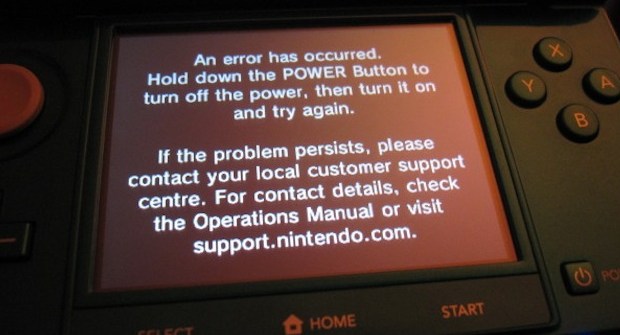 The 3DS is in the sweaty palms of hundreds of thousands by this time, and you know what that means: launch issues! Yes, like some other major hardware releases, the 3DS’s launch will not be without hiccups. There are reports that a few of the new handhelds are randomly crashing pretty hard to a black screen (seen above, and documented here) recommending a hard reset.