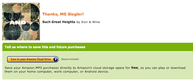- Any album bought through Amazon MP3 is stored for free in your Cloud Drive — a very nice perk.