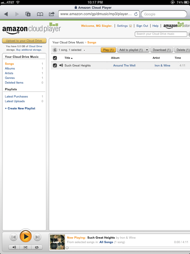 On Android devices, Cloud Player works by way of the Amazon MP3 app. This app does not exist on the iOS platform because it would compete with Apple’s iTunes Store. Presumably, Amazon could make another stand-alone app for Cloud Player or include it in one of their other Amazon iOS apps, but Apple new platform rules on subscriptions make this a bit murky (Amazon’s Cloud Drive is free for 5 GB but costs a yearly fee for more storage).
