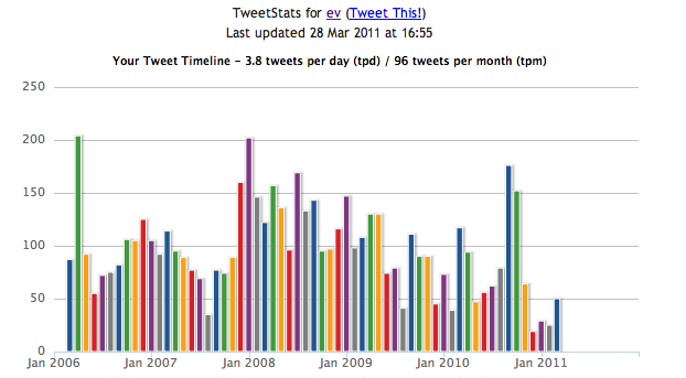 Anyone who follows Williams on Twitter (@ev) might have noticed that his Tweets have dropped off significantly since the beginning of the year. He hasn’t even Tweeted about Dorsey’s return yet.