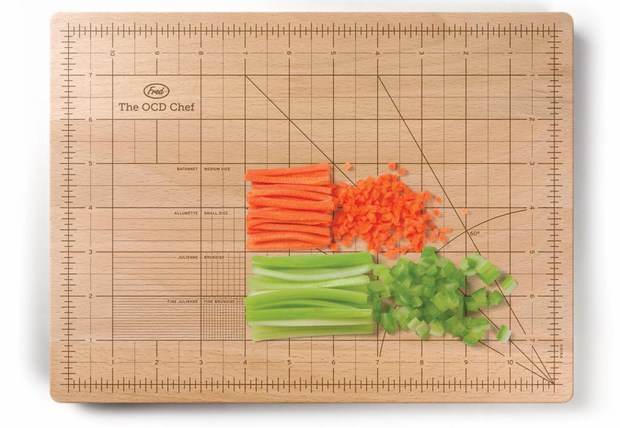 I won’t deny it — I get pretty neurotic when I’m chopping stuff in my kitchen. I was just fretting over some barbecued pork earlier that I simply couldn’t slice into pieces of equal width. Cheese is like that too, and of course celery. Maybe I’m crazy (I’m crazy), but I think we can all agree that this measurement-covered cutting board is a pretty good idea.