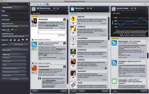 Founded in 2006, Radian6 helps companies monitor the social web (Facebook, Twitter, blogs, YouTube, forums and so on) in order to provide actionable insights in real-time and thus enable its clients to effectively join conversations with customers and prospects.