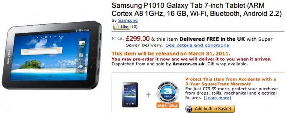 During CES, Samsung said the WiFi-only Galaxy Tab (P1010) would come out Q1 of this year. Well, Q1 is almost over and we haven’t heard, nor seen anything about a price or shipping date. Those across the pond have recently found the P1010 up for pre-order on Amazon UK with an estimated ship date of March 31 and price of $477.