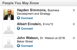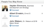 LinkedIn’s “People You May Know” contact recommendation engine has gotten a little cheeky on this Fools’ Day of April. LinkedIn has begun recommending people that clearly wouldn’t want to become my professional contacts. Though, Albert, if you’re reading this, feel free to peruse my resume. Some great examples of relativity.