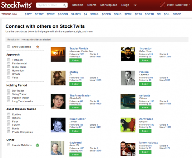 But maybe you have a stock in mind, but aren’t sure whether you should invest. StockTwits’ new discovery tools make it easy to select the type of traders or analysts that would be discussing your prospective stock, follow them, and join the conversation. Pretty cool.