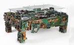 Rather than throwing a bunch of toxic, sharp computer parts into the landfill, BRC designs did what any green design firm would do: make a coffee table. The frame of the table was made from the computer towers, bent to form the basic structure. From there, computer parts were placed one-by-one onto the structure until completely covered.