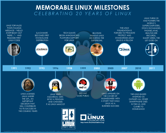 Here’s the Linux Foundation’s “Story of Linux” video, which is a good, quick summary of the last 20 years of Linux.