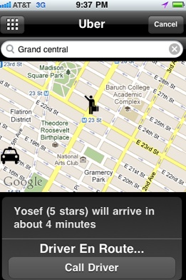 I know because I just ordered an Uber car on my iPhone in midtown Manhattan in the rain, and a big black SUV picked me up in about five minutes. Same great service as in San Francisco. I watched as it located a driver and saw the car move towards me on a street map (see screenshot). My driver, Yosef, was friendly and courteous. He told me he had to pass a rigorous test on his knowledge of New York city streets to become part of the Uber fleet. Everything was charged to my Uber account, and I saw the amount pop up on my iPhone at the end of the ride. I rated Yosef as a driver, and he rated me, and my ride was over.
