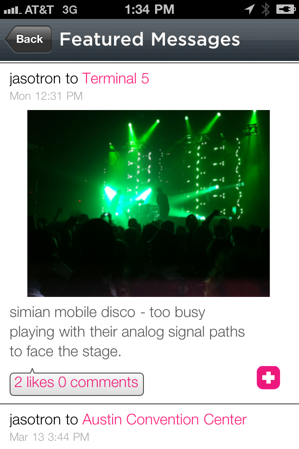So why the switch from group messaging? Peyton says in addition to the user density issues mentioned earlier, the company also noticed that rather than chatting with other people (which was difficult given that other people were rarely on the app), users were blogging about what was going on at their current location. So MessageParty took that use-case, expanded on it, and launched what we’re seeing today.