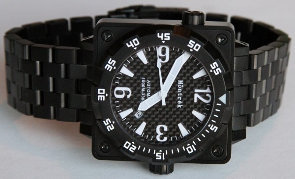 Man meet man watch. This isn’t a piece your girlfriend or wife can snatch from you and strap on themselves. No sir. This watch is about as masculine as it gets – and whether or not you like how it looks it will be hard to disagree with that conclusion. From Montrek this is the Square Diver PVD watch. Which also implies there is a non PVD black version. Sort of like a Bell & Ross BR01 meets actual warriors as opposed to weekend ones.