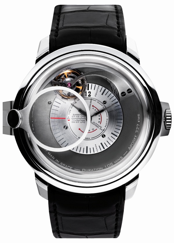 Ironically enough I was just thinking about BLU, and what ever happened to it? The cool high-end brand did some neat stuff with dials, but I haven’t heard anything about them in at least a year or two. Well now I know. BLU’s Bernhard Lederer is (BLU = Bernhard Lederer Universe) is on to other projects, and this is it – The Gagarin Tourbillon.