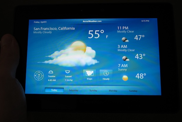 The battery life of the PlayBook is solid — I’d say comparable to the iPad. And I’d hope so given that this thing is thicker than the iPad.